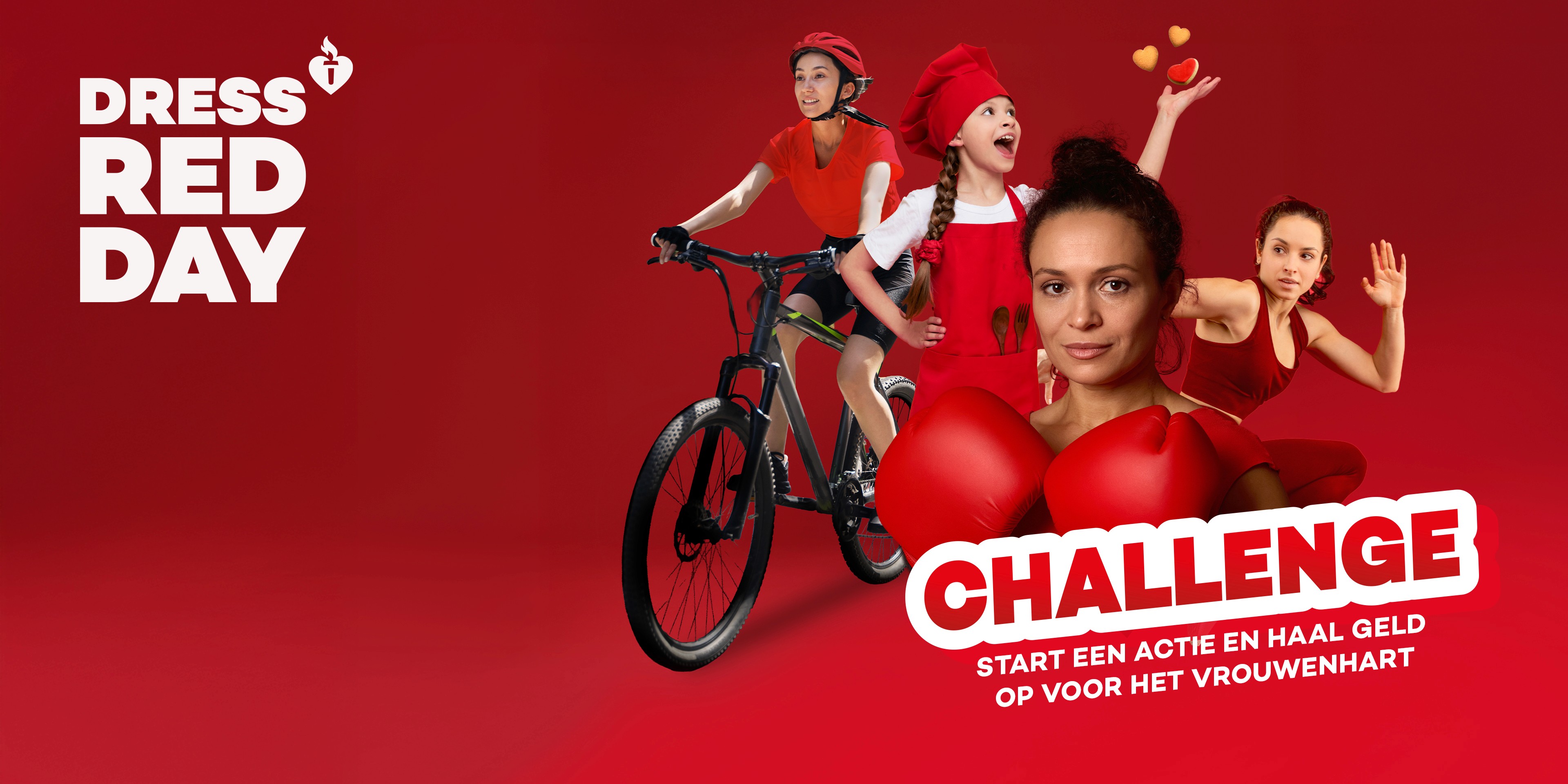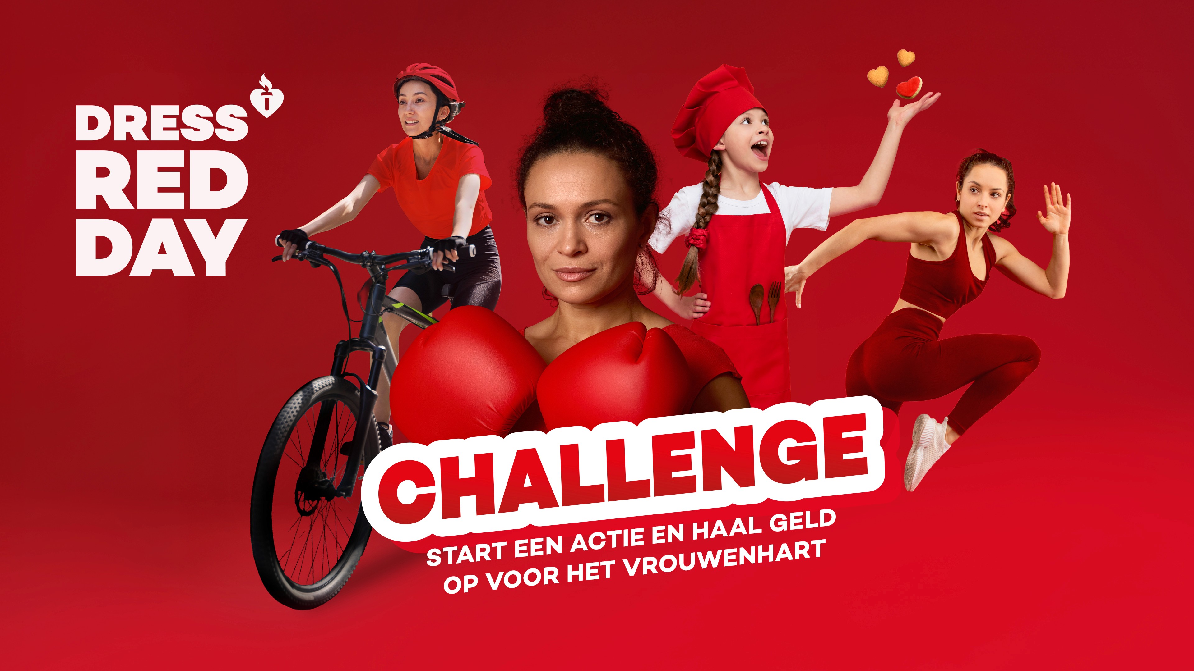 Maak een lange wandeltocht in de vorm van een hart, organiseer een rode hakken race of doneer een bedrag van ieder verkocht item. Kom in actie en steun onderzoek naar het vrouwenhart!